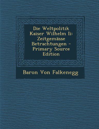 Die Weltpolitik Kaiser Wilhelm II: Zeitgemasse Betrachtungen PDF ePub is a childrens by .. under the pen name of .., published on February 14, 2012. .. was compelled to write ...